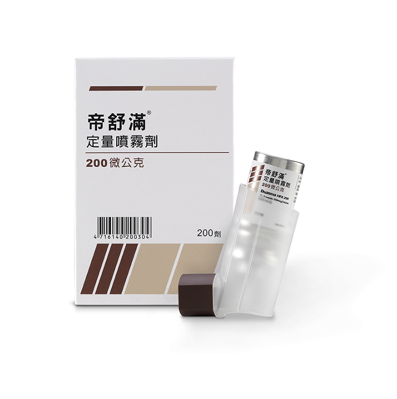 Duasma HFA MDI(帝舒滿)成分為Budesonide之皮質類固醇藥物,已於2013及2015年陸續取得台灣及香港藥證並上市,並同時進行國際查登,市場規模為每年8億美元以上。 藥品資訊查詢https://info.fda.gov.tw/mlms/H0001D.aspx?Type=Lic&LicId=01057770