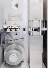 為世界知名的德國精密充填設備商所研發、製造,獨步全球乾粉吸入劑薄膜式充填系統,快速、小充填量 (10 mg)、精密、同時充填 60 個以上的產品。
